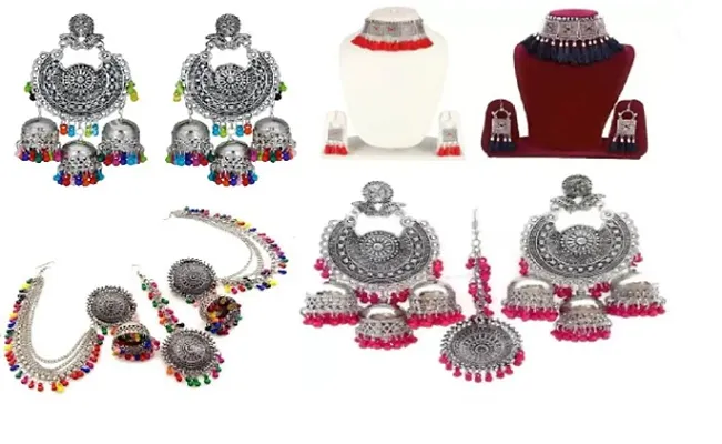 combo of 5(pairs) silver oxidised alloy jewelset for womens and girls quantity