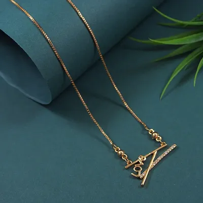 Traditional Alloy Gold Plated American Diamond Necklace Chain For Women