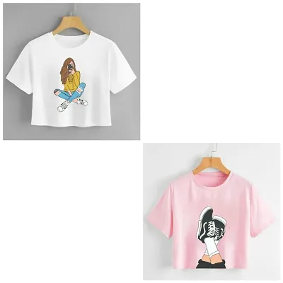 Womens Stylish Crop Printed Tshirt COMBO